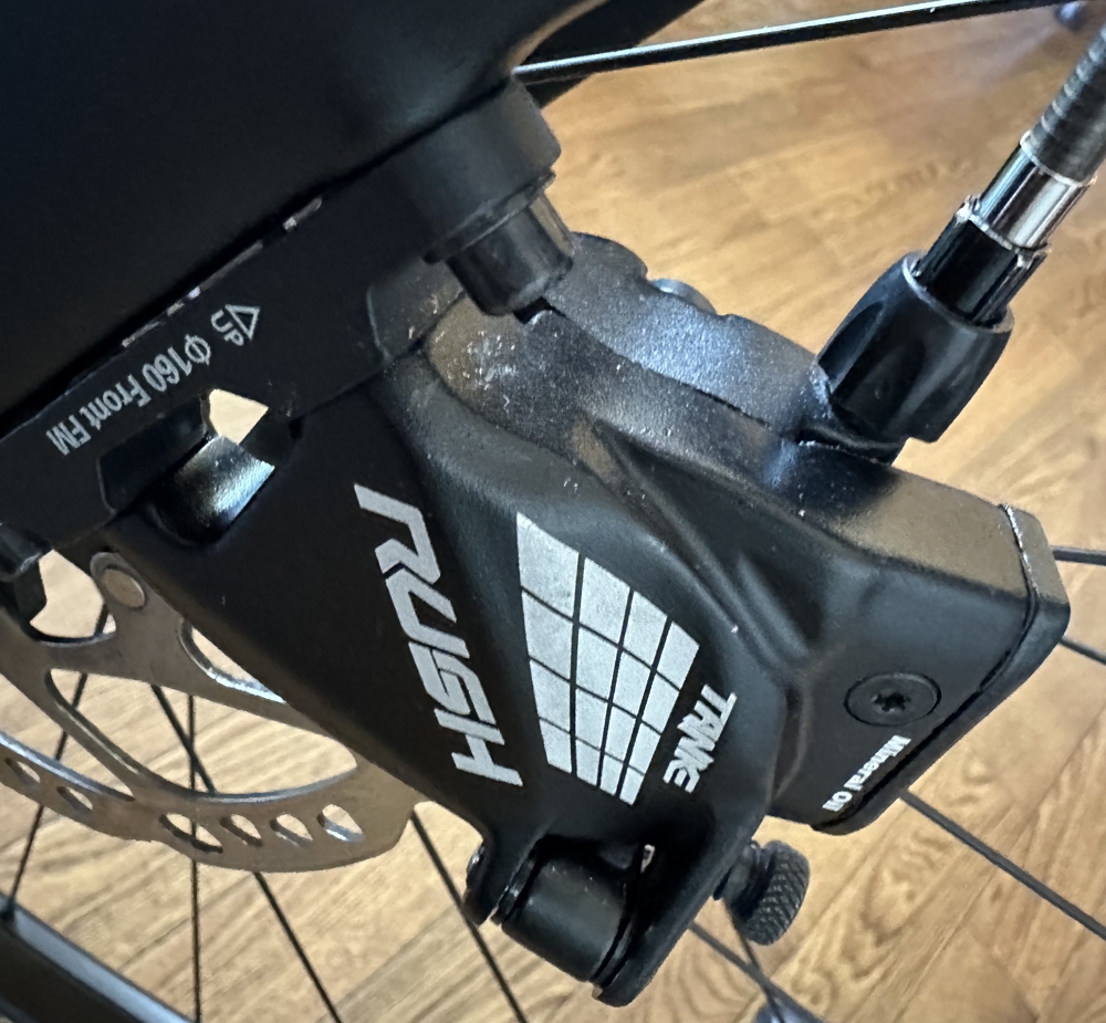 ↓機械式油圧ディスクブレーキキャリパー。ちなみにこれはオススメしない。タッチがスポンジー。ミネラルオイルを入れ替えてもタッチが変わらない。