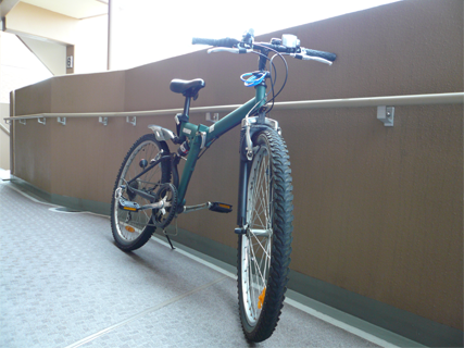 悪路走行禁止の、いわゆるマウンテンバイク風ルック車と呼ばれる自転車。